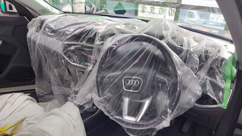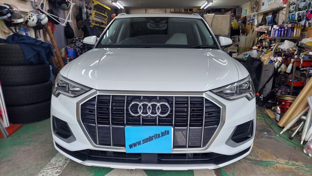 アウディQ3、フロントガラスにスーパー断熱フィルム 2025年11月10日 最終更新日時 : 2025年11月10日 admin アウディQ3入庫です。 お客さんと打合せフロントガラスに透明スーパー断熱フィルム施行させていただきました。 以前貼っていただいたのですが飛び石でガラス交換したので再施行させていただきました。