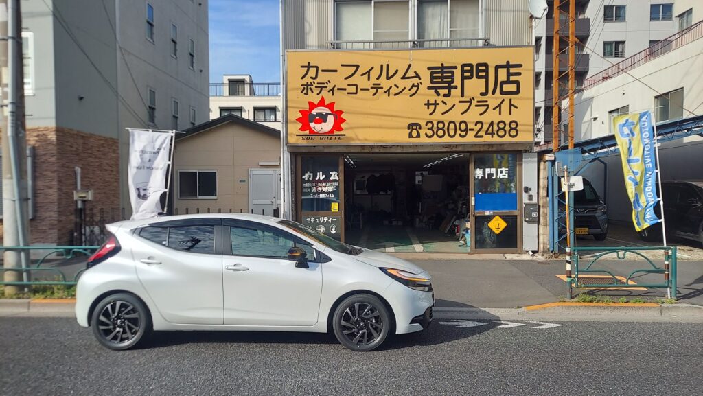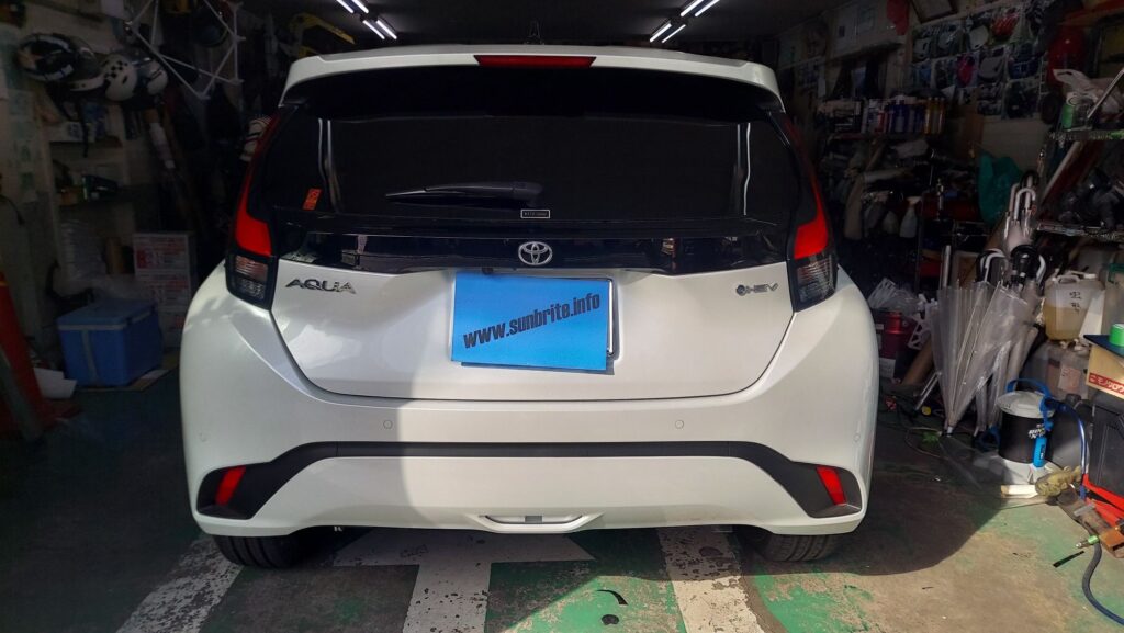 アクアにスーパー断熱フィルム 2026年4月23日 最終更新日時 : 2026年4月23日 admin アクア入庫です。 お客さんと打合せリアガラス一式にスモークスーパー断熱フィルム、運転席、助手席に透明スーパー断熱フィルム施行させていただきました。 フロントマスクがプリウスっぽくなりましたね。