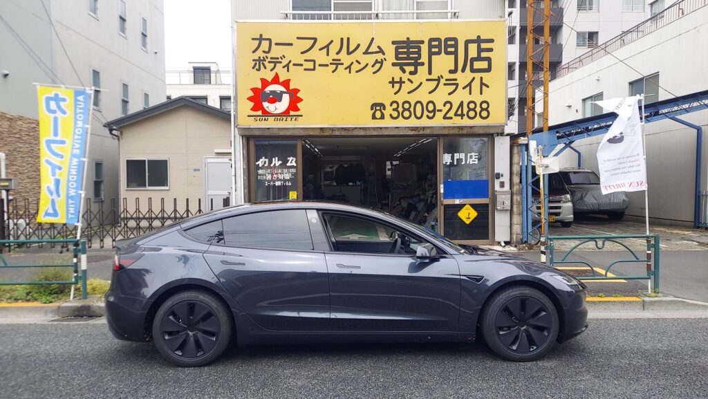 テスラモデル3にスーパー断熱フィルム 2026年4月9日 最終更新日時 : 2026年4月9日 admin テスラモデル3入庫です。 お客さんと打合せてリアガラスを一段薄うフィルムサイドは、濃いめにスモークスーパー断熱フィルム施行させていただきました。 テスラモデル3のリアガラスの縦1.6mあるので一枚では、貼れないんです。