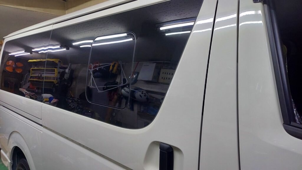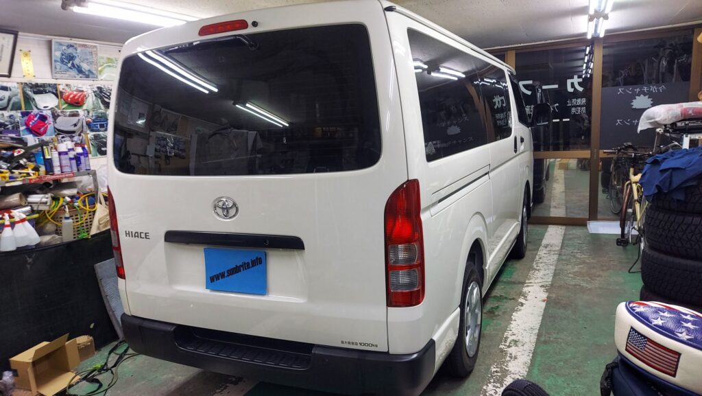 ハイエースにスーパー断熱フィルム 2025年10月16日 最終更新日時 : 2025年10月16日 admin ハイエース入庫です。 お客さんと打合せリアガラス一式にスモークスーパー断熱フィルム施行させていただきました。