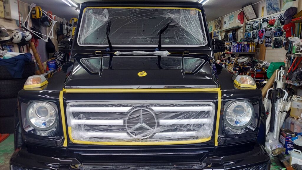 ベンツG350dコーティング&デーライトレンズ加工 2025年10月10日 最終更新日時 : 2025年10月10日 admin ベンツG350d入庫です。 お客さんと打合せデーライトレンズをスモーク加工&GFMXコーティングのご依頼をいただきました。