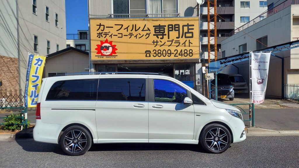 お客さんと打合せ運転席、助手席にステルスビジョンを施行させていただきました。