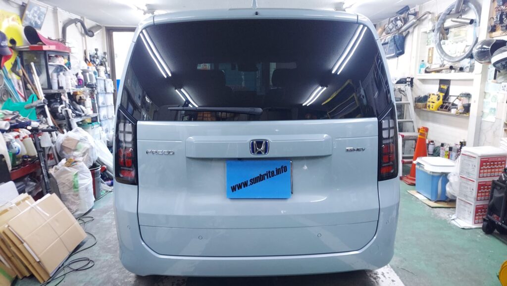 ホンダフリードにスーパー断熱フィルム&GFMXコーティング 2026年4月19日 最終更新日時 : 2026年4月19日 admin ホンダフリード入庫です。 お客さんと打合せリアガラス一式にスモークスーパー断熱フィルム、運転席、助手席に透明スーパー断熱フィルム。 ボディーは、お客さんと打合せGFMXコーティングを施行させていただきました。