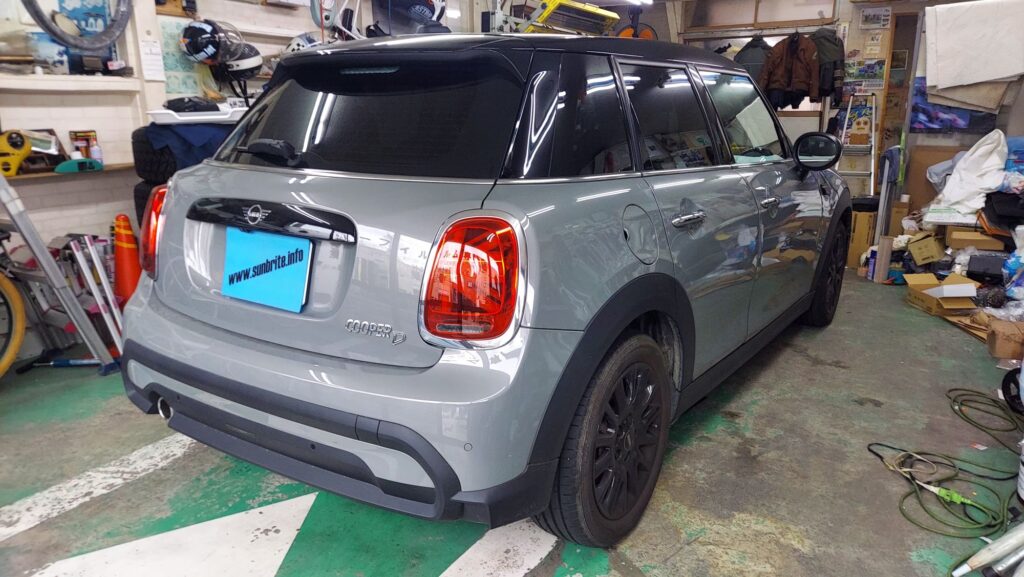 ミニクーパーdにスーパー断熱フィルム 2025年9月17日 最終更新日時 : 2025年9月17日 admin ミニクーパーd入庫です。 お客さんと、打合せリアガラス一式にスモークスーパー断熱フィルム、運転席、助手席に透明スーパー断熱フィルム施行させていただきました。