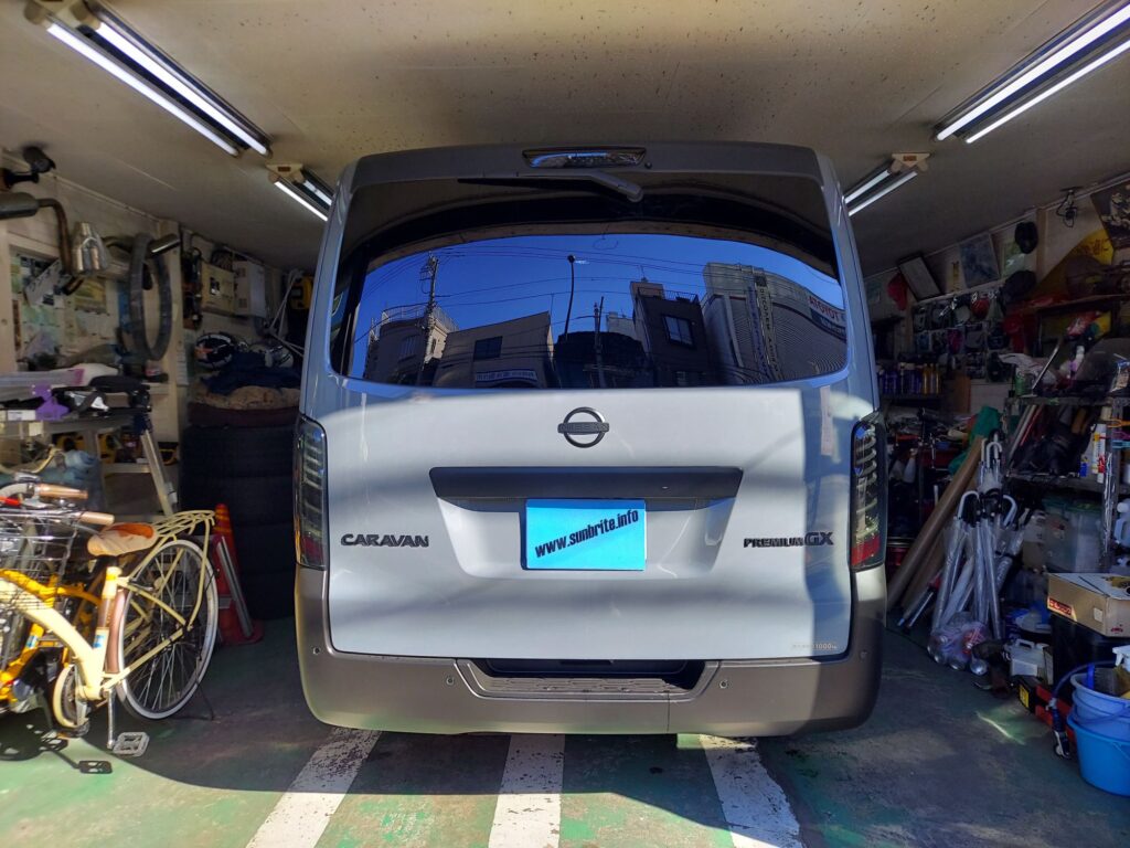 日産NV350にスーパー断熱フィルム 2025年12月10日 最終更新日時 : 2025年12月10日 admin 日産NV350入庫です。 お客さんと打合せリアガラス一式にスモークスーパー断熱フィルム施行させていただきました。
