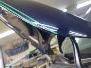 フィアット500入庫です。 以前ピンストライプ施工させていただきましたお客さんとからお悩みの連絡いただきまして、補修させていただきました。 角の処理にプロテクションシート利用させていただきました。