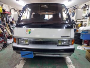 私が20代の頃、友人が乗っていたキャラバン、懐かしい~ お客さんと打合せ運転席、助手席に透明スーパー断熱フィルム施工させていただきました。 施工後、可視光線透過率も70%以上で問題ありませんでした。
