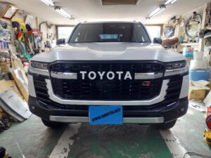 ランドクルーザー300入庫です。 お客さんと打合せリアガラス一式スモークスーパー断熱フィルム、運転席、助手席に透明スーパー断熱フィルム施工させていただきました。