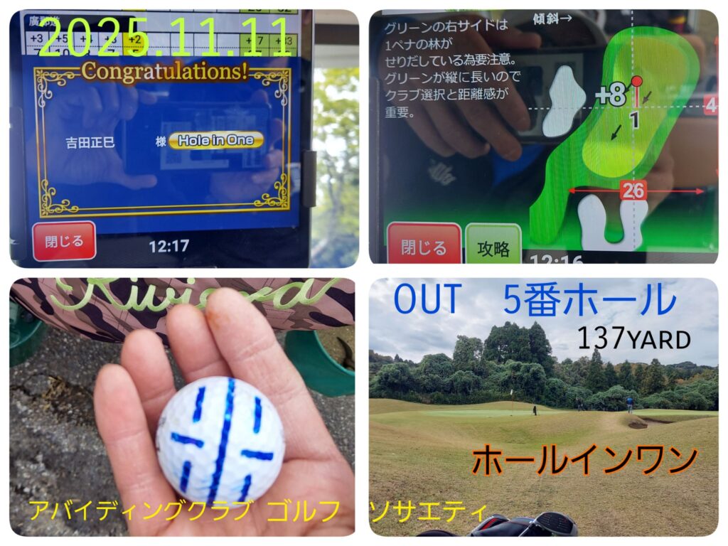 26周年の出来事(^-^)/ 2025年11月11日 最終更新日時 : 2025年11月12日 admin 本日、11月11日開店から26周年。 嬉しい出来事ありました。 千葉県アバイディングクラブゴルフソサエティのNo.5ホールで5度目のホールインワン。 最高に嬉しかったです。(⌒‐⌒)