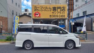 トヨタ ルーミー入庫です。 お客さんと打合せパッと見外から真っ黒に見えるようにとのリクエストでしたのでリアガラス一式にSC7015で施行させていただきました。